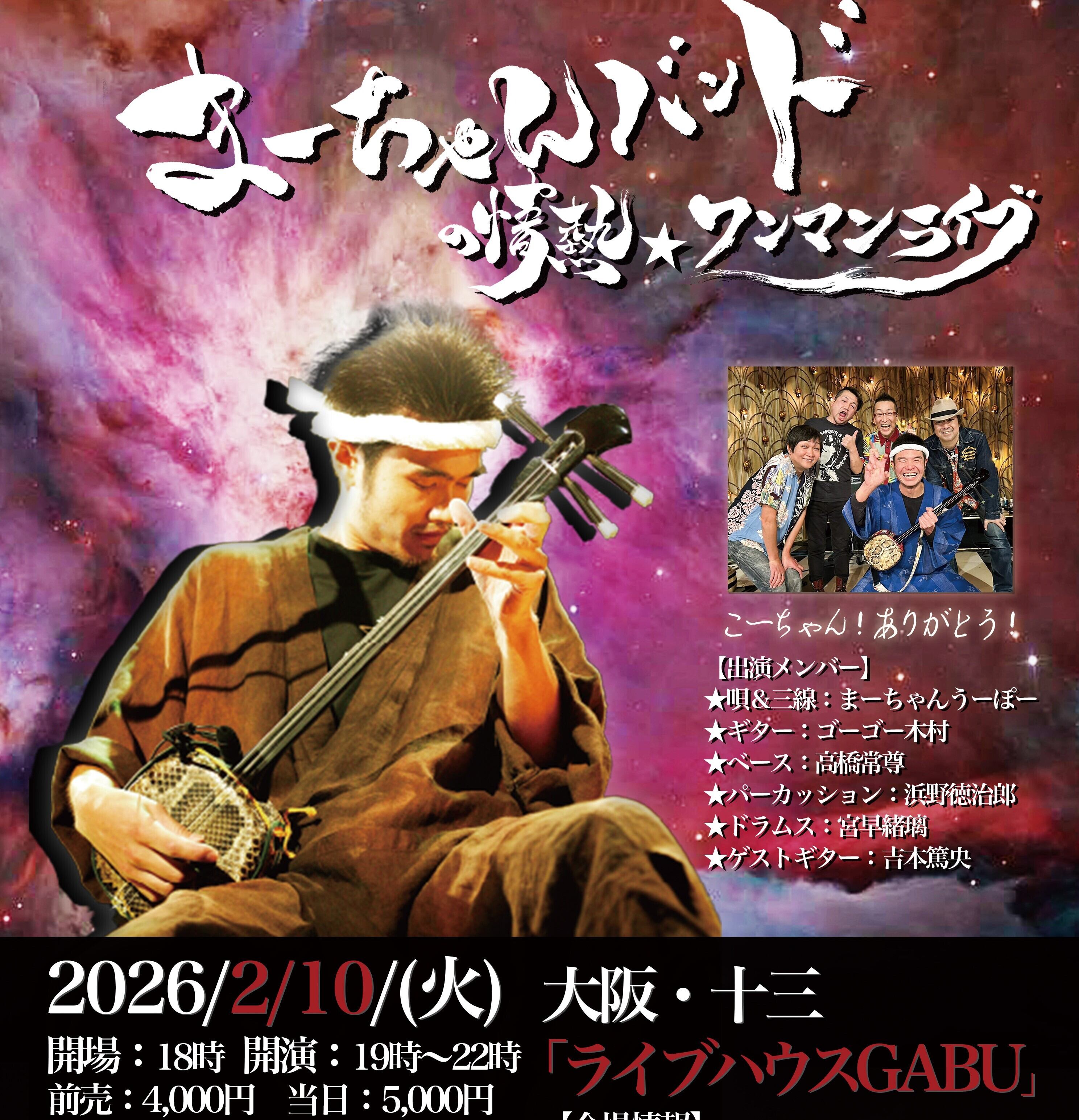 2/10まーちゃんバンドの情熱☆ワンマンライブチケット 前売り料金:4000円 ※人数分の枚数を購入ください ※代表者の名前と人数 もしくは、参加者全員の名前を備考欄に記入ください